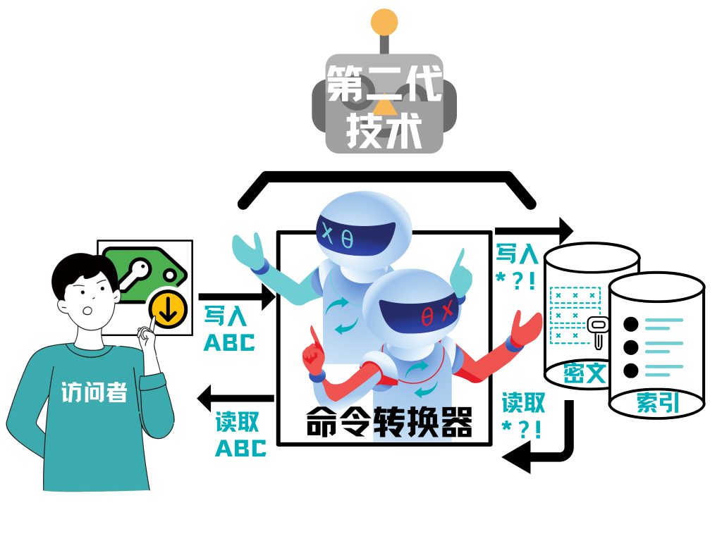 第二代技术的优点在于不再依赖数据库的视图、触发器、扩展索引等机制,具有很好的数据库兼容性,甚至可以用于SAAS云数据库的加密。而且性能也比第一代技术有明显提高。但是该技术又引入新的兼容性问题:对数据库命令的兼容难题。对于已经存在于数据库上的命令,比如已经存在的存储过程、函数、触发器等,以及复杂的索引,由于这些命令的执行位于网关之后,所以无法被正确执行,或者兼容的效果很不理想。另外,性能方面仍然存在下降过多的问题:由于修改了访问数据库的命令和存储的数据类型,数据库原来有效的优化策略会失效,导致性能大幅降低。
